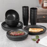 Collection de vaisselle en paille de blé durable 16 pièces assiettes incassables noires bols et tasses pour les repas de tous les jours