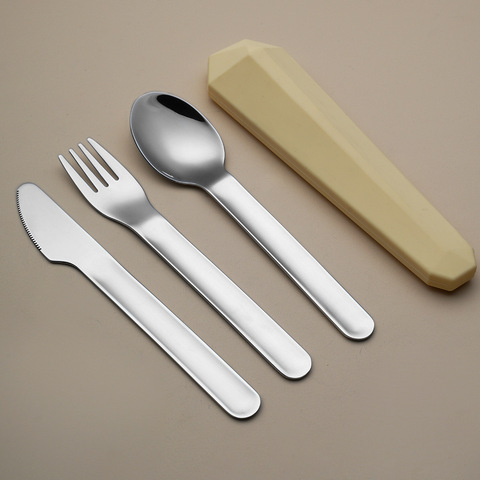 Logo personnalisé portable réutilisable voyage école travail pique-niques camping extérieur couverts en acier inoxydable avec étui en silicone