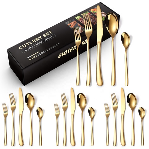 Buena Venta de 24 piezas de vajilla dorada para fiesta de boda, cena de alta calidad, tenedor, cuchara, cuchillo, juego de cubiertos de acero inoxidable