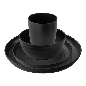 EcoFriendly 16 parça yemek seti buğday samanı kırılmaz siyah tabaklar kase ve bardak ev ve dış mekan kullanımı için
